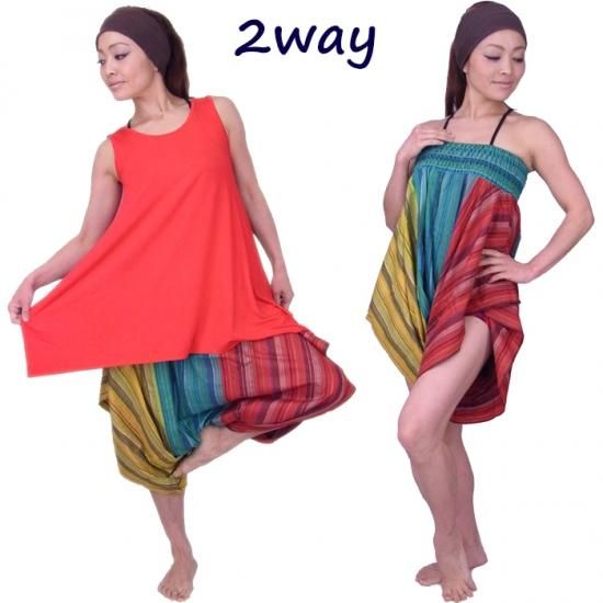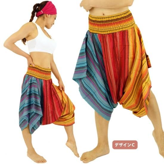 ショート丈/MIXボーダー/サルエルパンツ/カラフル/タイパンツ/エスニック/全5カラー/さらさら/コットン/