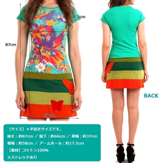 トロピカル 半袖ワンピース チュニック パッチワーク オウム カラフル Tシャツ ワンピース カラフル
