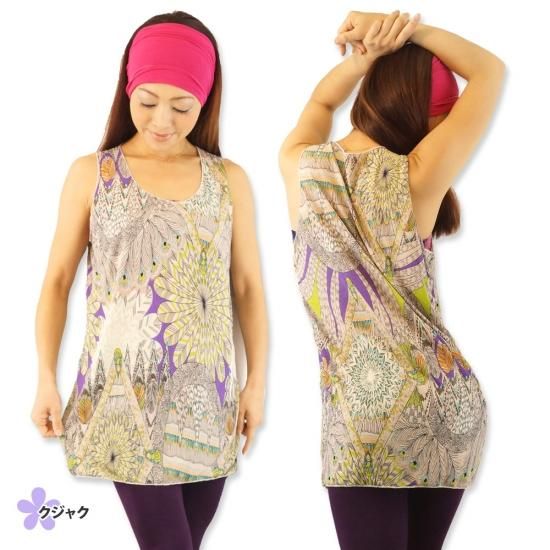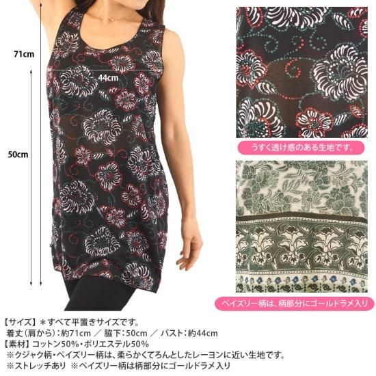 総柄ゆるロングタンクトップ/クジャク・フラワー・ペイズリー/3デザイン/キャミソール/エスニック/アジア