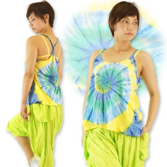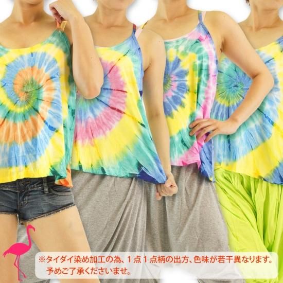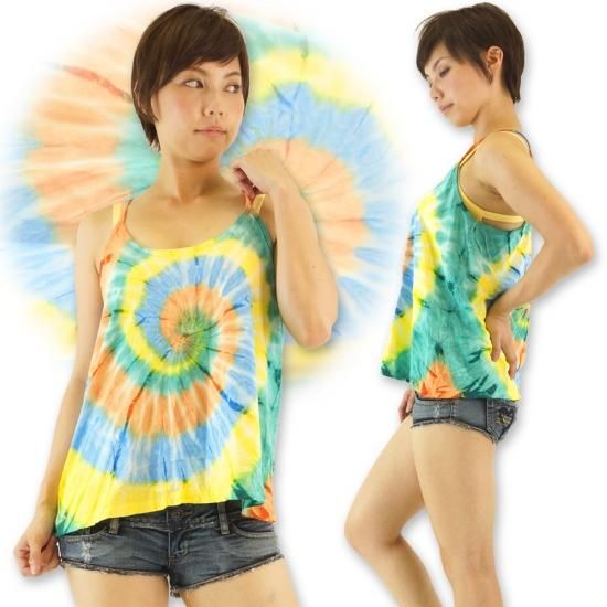 カラフルタイダイYバックキャミソールトップス☆インパクト大♪エスニック★Aライン★フレア★
