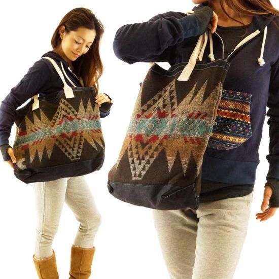 たっぷり荷物が入れられるネイティブ柄デザインのトートバッグ